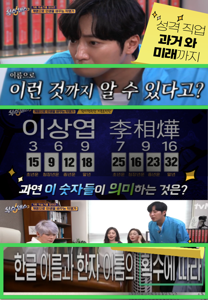 tvN 방송 '운명을 읽는 자들'에서 저의 멘토 황시현 원장님은 이름이 인생에 미치는 영향에 대해 다루었습니다.